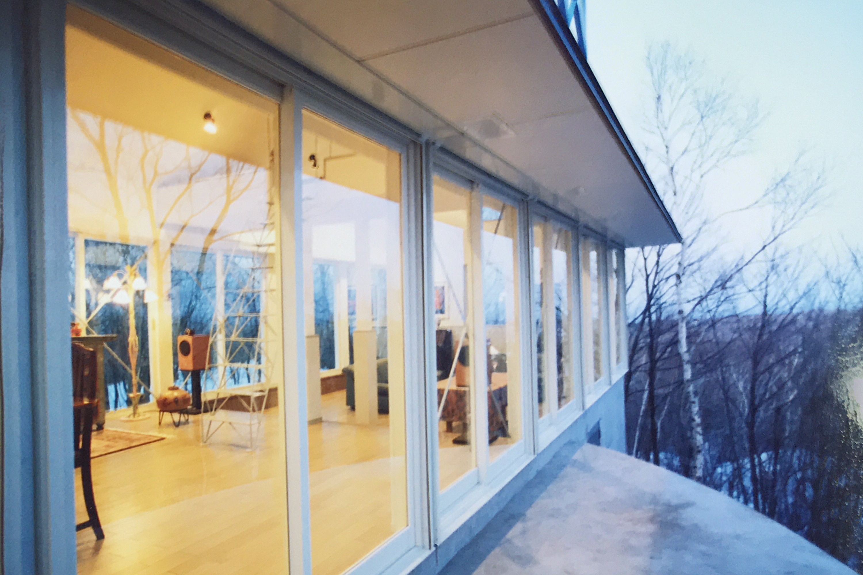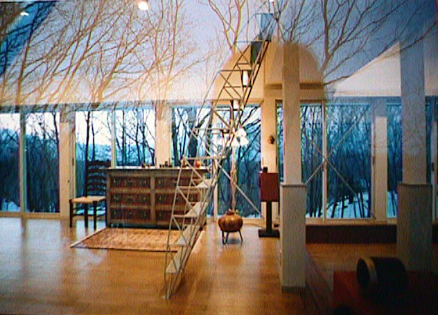 浅間の高みの豊饒の緑の中に差し込まれた人工の形態、自然が人工の形態に異化され、人工の形態が自然に異化される、開放と閉鎖、明るさと闇、構成の感情、物の感情、空間の感情、関係の感情、物の私語、意味の生産・・・・・・・・・すなわち、これも又<建築>